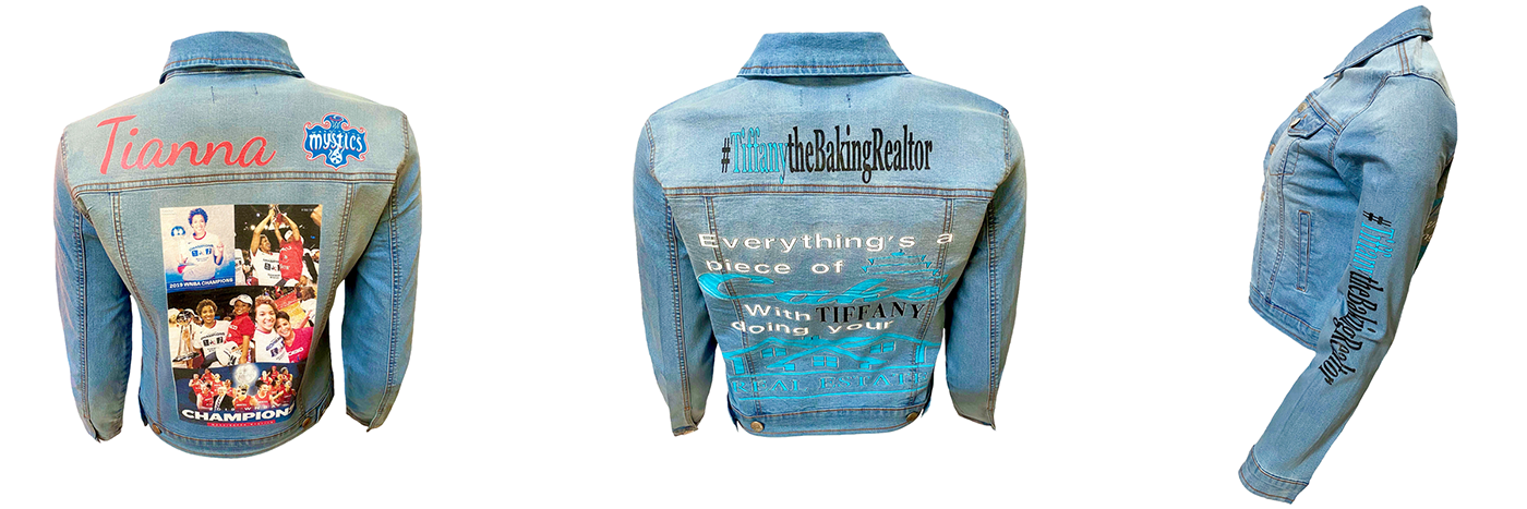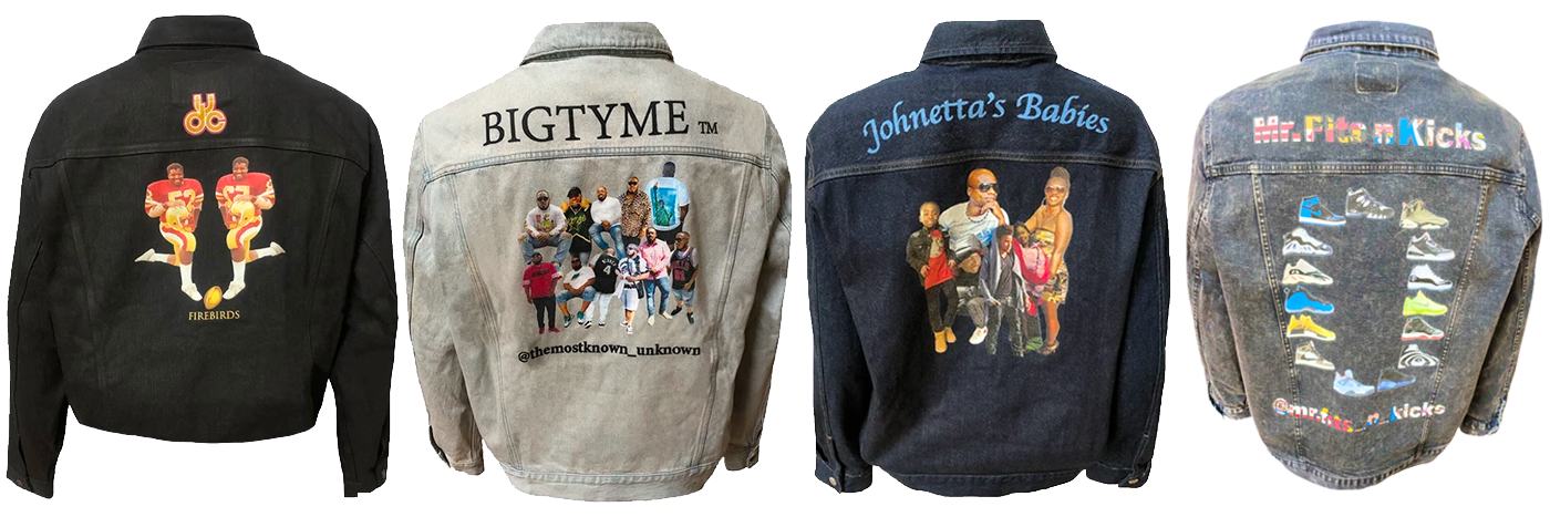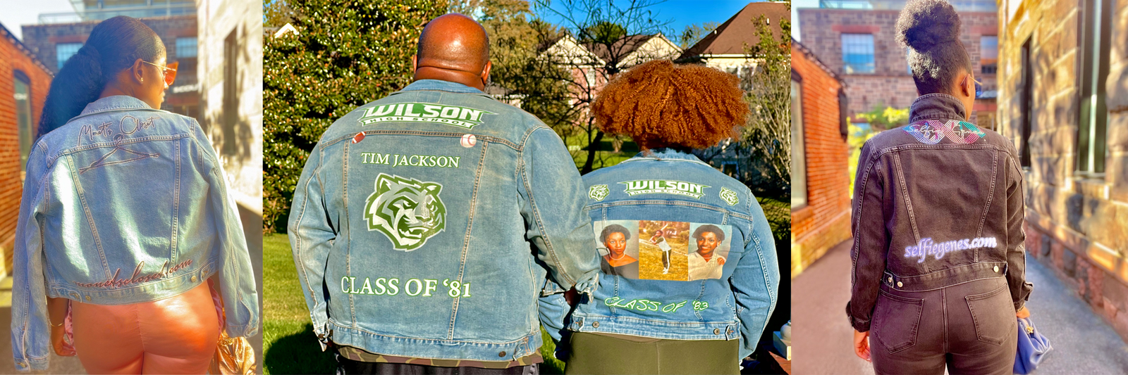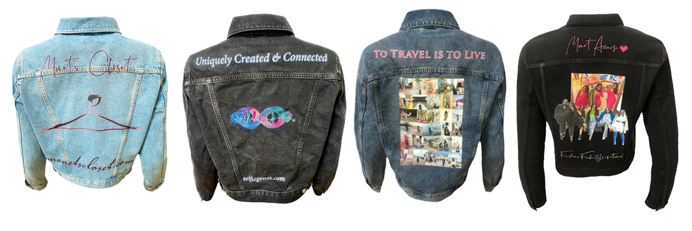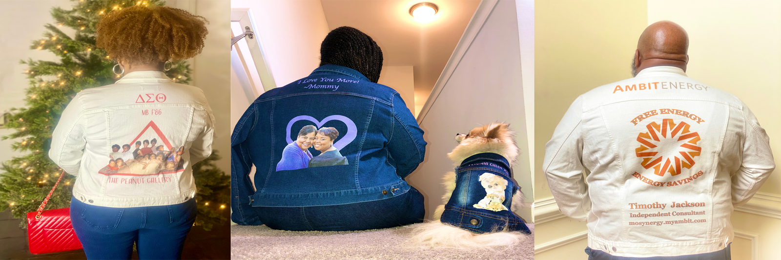 "I can’t wait to highly recommend your business “Selfie Genes” to all of my friends, family and especially my Sorors to have their favorite jeans and jean jackets customized. You made my experience both effortless and pleasant."